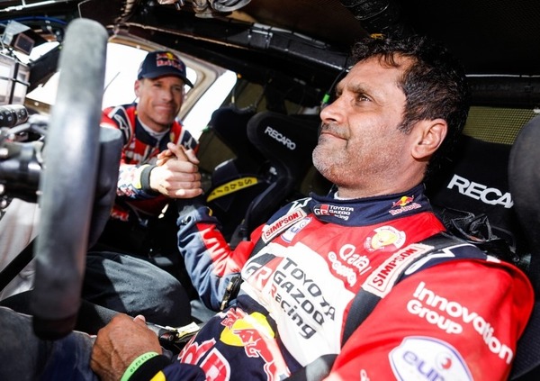 Solo nella fase finale della Speciale Al Attiyah ha un momento di sbandamento, quanto basta per spiegare l’arrivo asincrono con la Mini John Cooper Works Buggy di Carlos Sainz e Lucas Cruz tre minuti avanti alla Toyota Hilux Gazoo Racing di Nasser Al Attiyah e Mathieu Baumel.