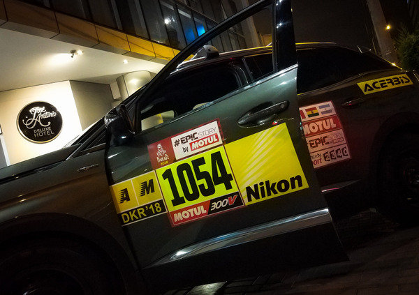 Per noi è più o meno lo stesso. Rientriamo, disfiamo e rifacciamo il bagaglio, carichiamo, scarichiamo e ricarichiamo tutto più volte, distribuendo le nostre cose per ordine di importanza operativa. Le Nikon per esempio più vicine e a portata di mano delle t-shirt, ma non delle carte stradali, e così strumenti e cartografie regionali, telefoni satellitari e altri ammennicoli indispensabili, per lo più sparsi sul cruscotto e sulle plance di comando della 3008. I sacchi a pelo, altro esempio, inutili per ora, giacciono in fondo alla Macchina sotto le ruote di scorta. La 3008, in assetto da “guerra” e le insegne della missione che occupano ogni lato, fa la sua figura. Il “kit” Dakar aggiunge un tono speciale al carattere del SUV Peugeot.