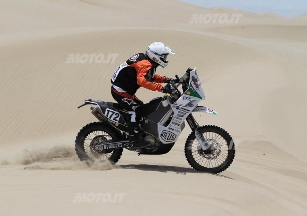 Continua anche la Gara dei “Figli” Cinotto, Pietro e Carlo che, dopo il ritiro di papà Michele, hanno chiuso la tappa al 57° e 67° posto. Manuel Lucchese, lo avevo erroneamente presunto disperso o disperdibile, ma non è vero. Manuel sta facendo la sua gara, come sempre difficile e originale, alle prese con una quotidianità che non gli da pace, ma sembra averla presa per il verso del pelo, e “agguanta”. Un po’ indietro in classifica, ma Manuel ci ha sempre detto che alla Dakar la classifica è una cosa che si guarda alla fine.