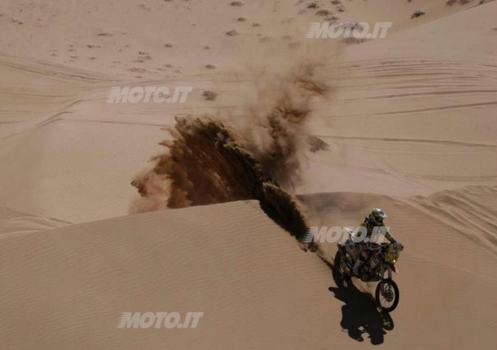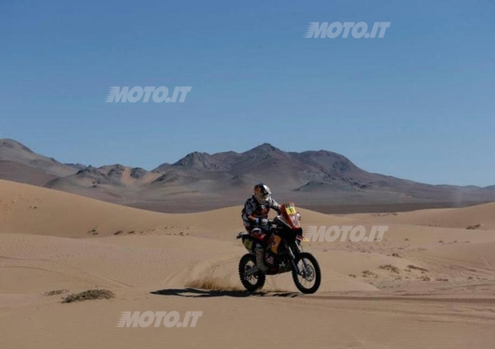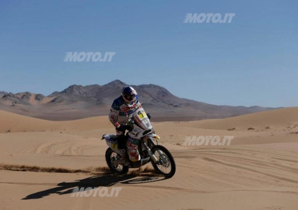 Penultima tappa, ultima occasione “concreta”. Forse soltanto per Francisco Lopez, atteso dai tifosi nella tappa che è senz’altro la più importante del passaggio finale della Dakar in Cile. L’inizio, però, è “standard”. Verhoeven apre la pista, è ben presto affiancato da Ruben Faria, e Joan Barreda prende il comando delle operazioni nel tratto più veloce di inizio Speciale. I primi tre vanno forte. Cyril Despres parte indietro, sfrutta la scia di tracce che gli “ouvreurs” hanno lasciato davanti alle sue ruote, e ottiene il miglior intertempo prima che i concorrenti entrino nel tratto di dune e di navigazione. Faria rallenta vistosamente, evidentemente affronta una situazione difficile.