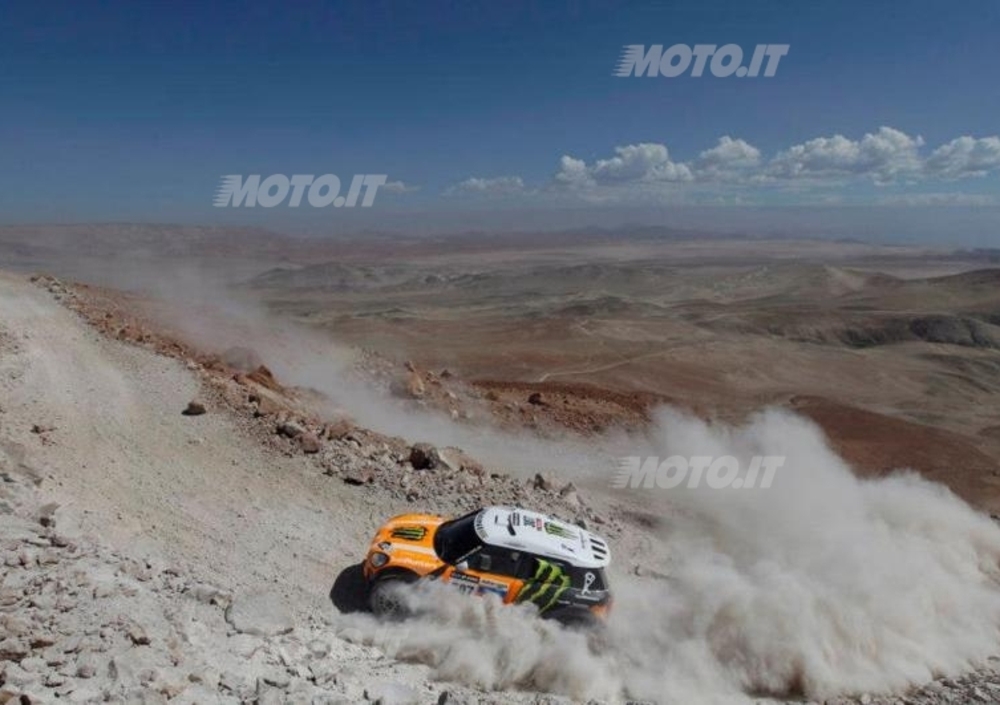 Ma le Mini All4 Racing sono tutte lì, a distanza ravvicinata, e a un terzo di speciale è quella di Joan “Nani” Roma che passa al comando. Lo spagnolo, particolarmente a suo agio sul veloce, aumenta l’andatura e trascina nella volata, che dura fino al traguardo, il compagno di Team e leader della generale Stephane Peterhansel ed il sudafricano De Villiers.