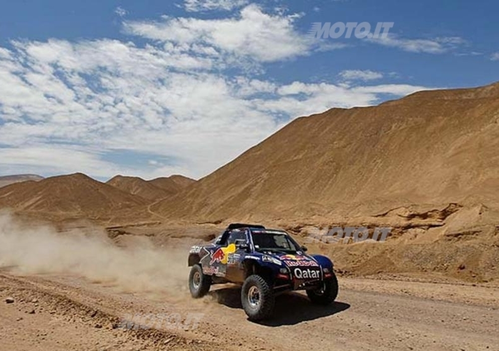 Joan “Nani” Roma parte per primo con il compito di aprire la pista. Sembra cavarsela egregiamente, poi resta insabbiato poco oltre il chilometro 70. Ci vorranno tre quarti d’ora perché il vincitore in moto della Dakar 2004, il primo spagnolo della Storia, possa ripartire. Ad approfittarne sono i Buggy Qatar-Red Bull. Al-Attiya e Carlos Sainz, consapevoli che il terreno sabbioso favorisce la loro corsa, hanno sferrato l’attacco e prendono il volo. Prova a resistere Giniel De Villiers, ma poi la Toyota del sudafricano rimane intrappolata a sua volta nella sabbia per due volte, la seconda poco oltre la macchina di Joan Roma ancora ferma.