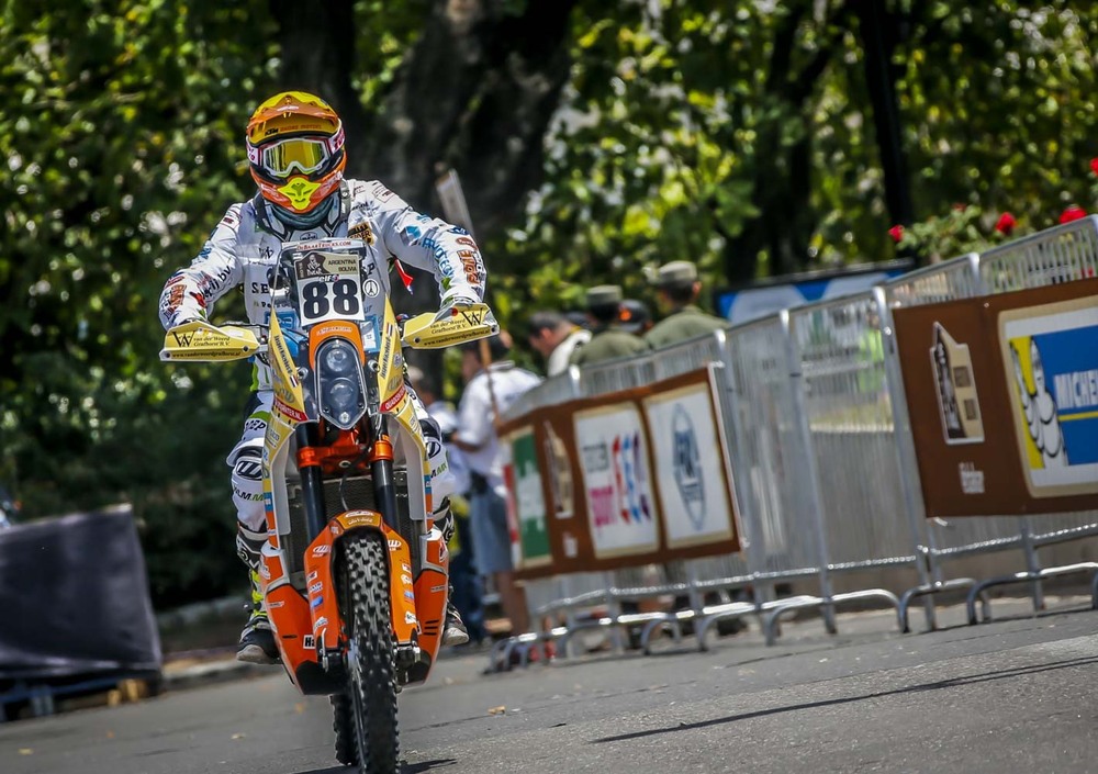 Villa Carlos Paz, 3 gennaio 2016. Ieri sera, al bivacco light di Rosario, Antoine Meo era piuttosto seccato. La sua moto aveva “bevuto” nel famoso guado di “appena 30 centimetri” del prologo, sì, quello che aveva creato più di un colpo di scena a Sainz, alla Sanz, a Renet & Co., tutti fermati dalle acque più profonde del previsto. Il cinque volte Campione del Mondo di Enduro, ora riconvertito ai Rally Raid, aveva dovuto perdere un sacco di tempo per svuotare la cassa filtro allagata, in compagnia degli improvvisati tifosi che avevano messo la sua KTM letteralmente a testa in giù, e alla sera era arrabbiato più che per l’evento in sé per la sua proiezione sui giorni a venire: “Quel ritardo stupido, e non è colpa mia, mi costerà adesso tre giorni d’inferno nella polvere di Piloti più lenti che dovrò sorpassare. Per riallinearmi ai primi, se tutto va bene, impiegherò tre giorni!”.