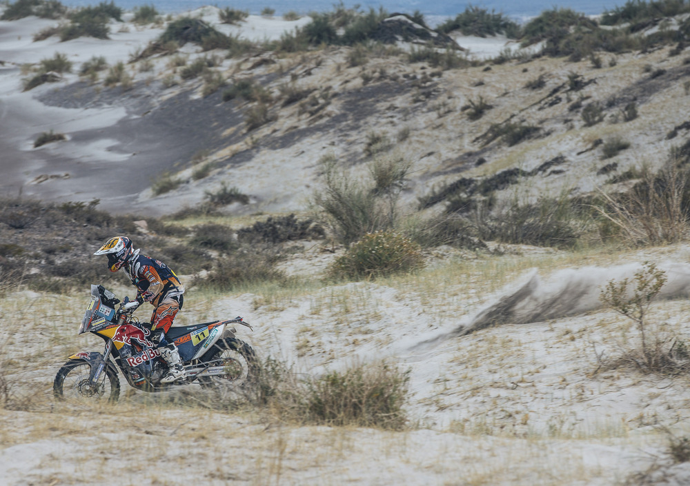 Toby Price (KTM) allunga al CP4, quando mancano circa 40 km alla fine della tappa. Stacca Antoine Meo (KTM), secondo, e allunga di oltre dieci minuti sul suo rivale diretto Stefan Svitko.