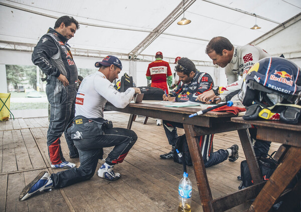 Il film della volata del Salar. Nella prima parte della Uyuni-Uyuni sono Peterhansel e Cottret che impongono l’andatura, ma al 4° Waypoint, un terzo di Speciale circa, sono Loeb-Elena che passano al commando. L’accelerazione più forte alla parte centrale della Tappa è impressa dalla 2008 DKR n° 303 di Sainz-Cruz, che vola sulle piste velocissime attorno al Salar e si istallano in testa. Nell’ultimo terzo della Speciale è la volta di Peterhansel, che sovverte definitivamente l’ordine di volo delle tre Peugeot installandosi al comando della Pattuglia stellare. “Monsieur Dakar” prende il comando delle operazioni e allunga costantemente, favorito da un lieve rallentamento delle altre due 2008 DKR che abbassano il ritmo, Loeb in funzione tattica della lunga Speciale che riporterà i concorrenti in Argentina, Sainz evidentemente pago di un altro risultato eccellente e con il pensiero alle “sue” tappe di sabbia della seconda parte della Dakar.