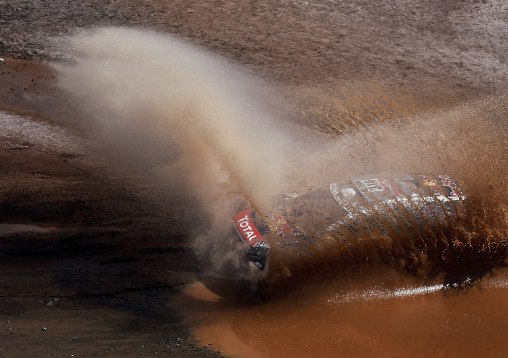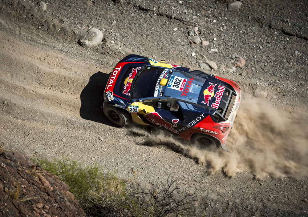 Un compito davvero difficile per il leader della Classifica Generale, Sébastien Loeb, che avendo vinto la speciale precedente deve aprire la pista. Nel frattempo Al Attiyah, il vincitore della scorsa edizione, prova l’attacco, cosicché Loeb e Elena, irriducibili, rispondono sugli stessi toni. Il momento sfortunato è quando la 2008 DKR incorre in una foratura, quello drammatico più avanti, a meno di 50 KM dall’arrivo, quando Loeb, nel tentativo parzialmente riuscito di recuperare terreno, mette una ruota nel posto sbagliato e la Macchina lanciata alla massima velocità parte in tonneau. Le capriole si fermano con la 2008 DKR seriamente danneggiata, ma la cellula e le parti vitali sono ancora a posto. Loeb e Elena lavorano in silenzio, rimettono la Macchina “sulle ruote” e riescono a ripartire e ad uscire dalla Speciale, ma molto attardati.