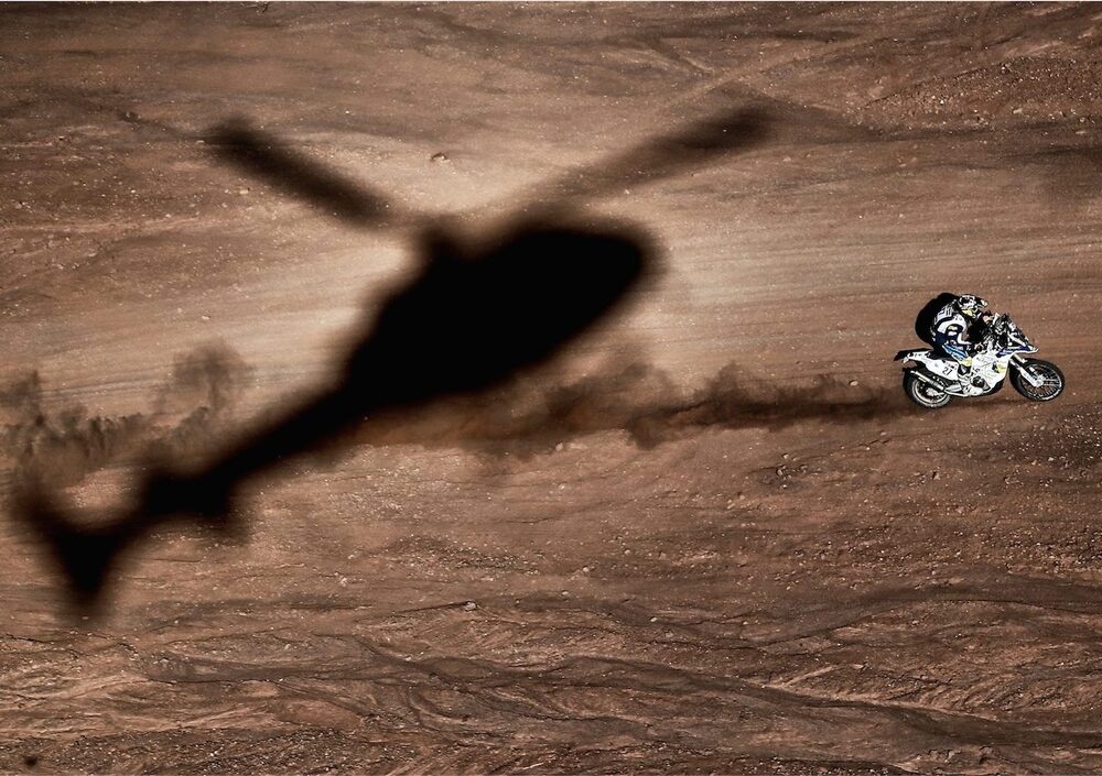 Poche strategie a disposizione, deve confrontarsi con un Pilota una Squadra che hanno 15 anni consecutivi di successi alla Dakar. Poco tempo dopo la partenza, Paulo Gonçalves completa il quadro della sua “solitudine”. Barreda, che avrebbe potuto diventare un supporto basilare della battaglia di Gonçalves, ha preferito andare a casa, al contrario di Paulo, dopo 500 chilometri al traino del “solito” Ceci. Difficile giudicare la scelta di Barreda. Venire per vincere e rimanere a piedi è un boccone che va masticato a lungo perché possa andar giù. Rimanere e far da tappo agli assalitori del compagno di Squadra sarebbe un bel gesto, ma ci vuole lo spirito giusto, che sicuramente Barreda non ha in questo momento. Resta Metge, il nuovo arruolato dalla Squadra per proteggere le spalle dei Piloti di punta. E resta quel filo elettrico (diciamo per dire, ma magari è proprio un filo), che ferma anche la sua Moto. Gonçalves è solo, non gli resta che spingere più che può, resistere agli attacchi degli avversari e spingere per fare una differenza. ma quando si spinge forte si aumentano anche i rischi, e così Paulo è caduto in una pista veloce di pietre smosse. L’insaccata della moto decollata un attimo prima su un ostacolo, il rimbalzo e la compressione, la moto si scompone e catapulta via il PIlpota, che cade rovinosamente. È il tipo di incidente che può avere conseguenze serie. Ma non è successo nulla.