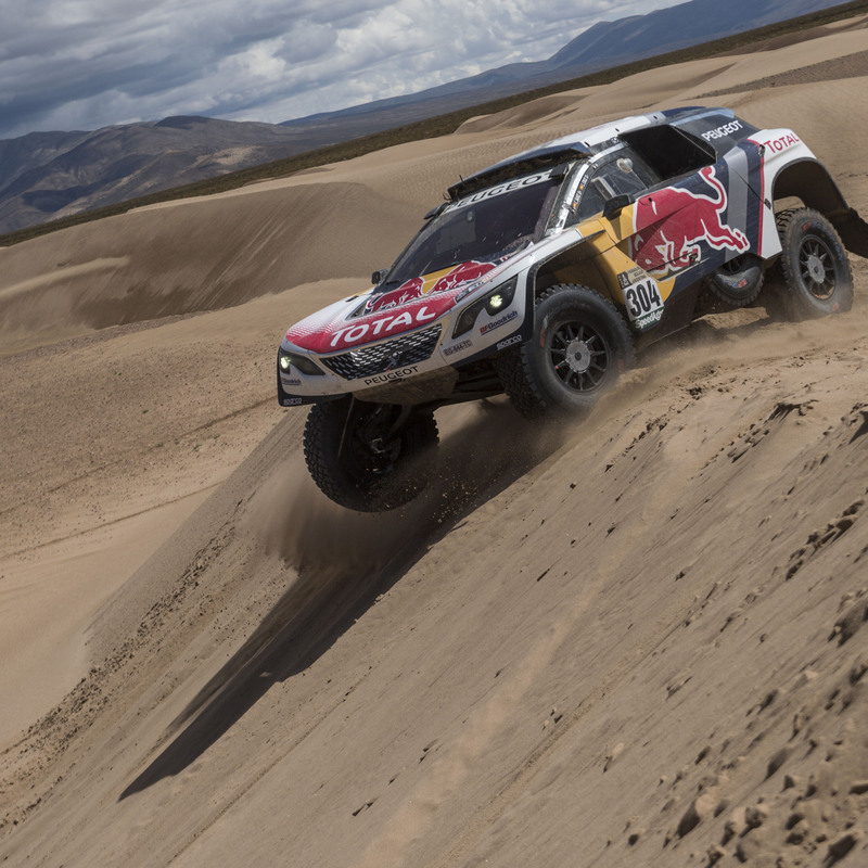 Dalla Gara delle auto arriva ancora una conferma, ma questa volta più discretamente, del gran lavoro che è stato fatto sulle Peugeot DKR a Velizy. Tolta quella di Sainz, che si dovuto ritirare per i danni subìti nel cappottamento in vista del traguardo, le Macchine di Loeb, Peterhansel e Despres ormai giocano per conto loro. Bastava dare un’occhiata all’ordine di partenza, ricordarci cosa aveva detto Marc Coma a proposito dell’impegno, per capire che Despres non avrebbe avut vita facile ad aprire la pista. Solo Joan “Nani” Roma continua a mantenersi nei paraggi, ma il podio di oggi è solo la conferma che per quanto gli avversari, Toyota e Mini, abbiano lavorato bene, il gap con le Peugeot resta incolmabile. E allora avanti lo spettacolo dei tre Piloti Peugeot, oggi è la vota di Sébastien Loeb che lancia uno dei suoi attacchi più tipici, salendo in cattedra come se avesse dieci anni di esperienza di Rally-Raid, e solo un piccolo errore nel finale, di navigazione , fa sì che qualcuno possa “criticare” il fuoriclasse francese. Ha però sbagliato Peterhansel e ha sbagliato che Despres, ma questo non ha impedito al Team Paufgeot Total di presentarsi ancora una sui tre gradino del podio. Peterhansel torna in testa alla Dakar, che è un suo antico “pallino”, e Despres scende al terzo posto. In mezzo Loeb è pronto a sferrare il suo attacco, potete giurarci. Despres continuerà ad approfittare dei suoi miglioramenti, magari cercando di non farsi vedere, e comunque l’ultima parola spetta, come sempre, a Peterhansel, che intanto è il solo a vedere più chiaramente la situazione dall’alto. Vogliamo spendere una parola su Nani Roma, l’unico Pilota visibile nella cortina creata dalle Peugeot? Sì, la Toyota del Catalano è quarta, e ora che anche la Mini di Hirvonen è scesa lontana dal podio, è anche l’unica forma di alternativa che si possa immaginare per questa Dakar