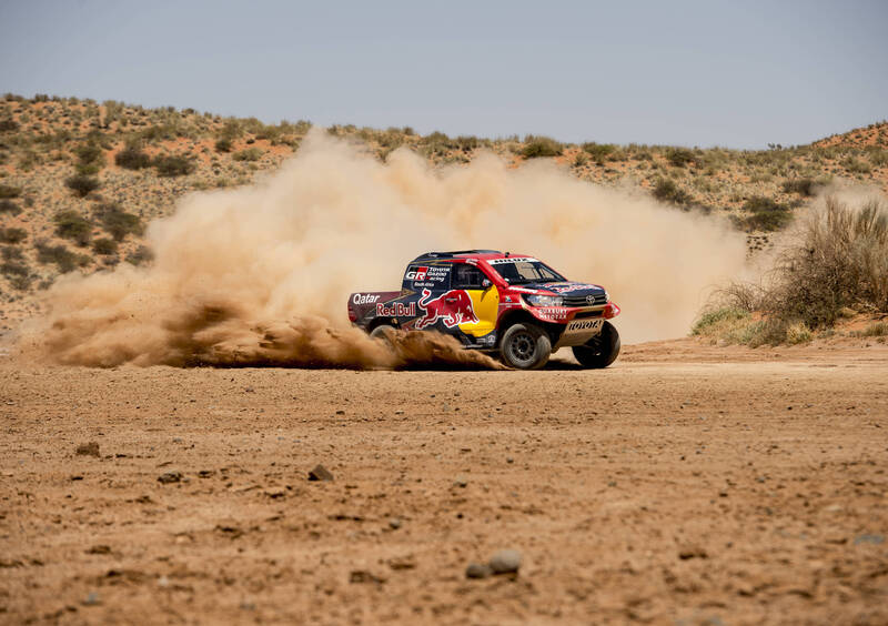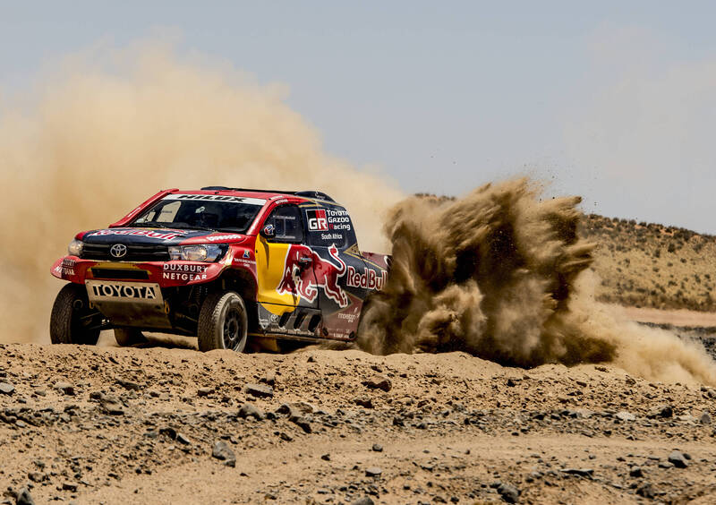NAA. “Niente, non è cambiato niente. Di sostanziale. Facciamo questo mestiere e cambiamo sempre qualcosa, ma sono piccole cose. Beh, abbiamo un nuovo Team. E abbiamo una nuova macchina. L’intera stagione è andata bene, e abbiamo deciso, di conseguenza, di disputare anche la prossima, anzi l’imminente Dakar in questo assetto. È Toyota, è l’Hilux spinta dal motore a benzina, no, non è la versione EVO a due ruote motrici, ancora certamente molto giovane, ed è il Team Gazoo.”