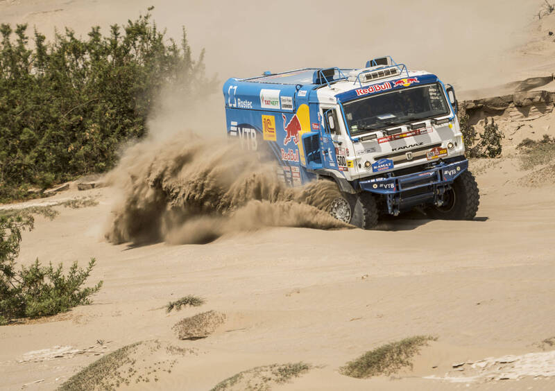 Le Auto. Stephane Peterhansel è lanciato verso il 15° Titolo. Se non dovesse arrivare certamente farebbe più notizia, ma la mezz’ora di vantaggio su Carlos Sainz sono il tesoro dei Pirati. Non ci sono grandi alternative all’orizzonte. Le Toyota di Ten Brinke (bravissimo), Al Attiyah (nervoso) e De Villiers (il solito), fanno mucchio ma poca scena con un ritardo che va dall’ora e venti all’ora e mezza. un abisso. Il resto della concorrenza è sparito. L’unica Mini “tradizionale sopravvissuta alla clamorosa disfatta è quella di Przygonsky, il buggy di Hirvonen è un’altalena di alti e bassi, interessanti ma fuori gioco. Meglio concentrarsi sull’Italiano. Eugenio Amos ha fatto furore nella penultima peruviana, poi ha sofferto un problema al cambio e l’altitudine, ma è ancora nei dieci e ormai fa coppia fissa con la Peugeot privata di Al Qassimi. Bella storia tra i due gentlemen, ma la notiziona da ritagliare è quella dell’Italiano che si fa notare. Stefano Marrini è fuori dalla seconda Tappa, le dune hanno ucciso il motore della sua Macchina.