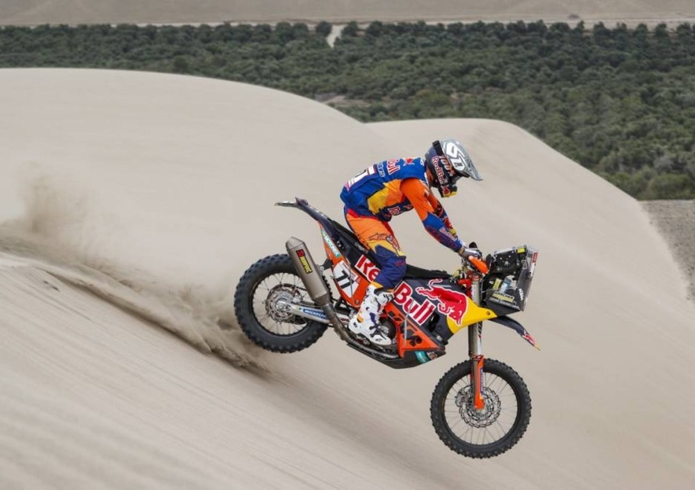 Nella categoria delle due ruote, per tutti i 336 km di speciale il cileno Pablo Quintanilla ha spinto al massimo la sua Husqvarna ed è riuscito a conquistare la classifica di giornata e anche la generale. Alle sue spalle, staccato di 1’52” si piazza la Honda di Benavides; chiude il podio di giornata il n°1 Walkner con la sua KTM ufficiale, con un ritardo di 4’21”. Seguono Price e Van Beveren: il francese della Yamaha aveva chiuso in 9^ piazza, ma la direzione gara gli ha scalato 8 minuti per essersi fermato a soccorrere l’infortunato rookie Santolino, costretto poi al ritiro mentre si trovava in 4^ posizione nella classifica generale.