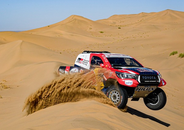 La Gara delle Auto è scandita inizialmente dal ritmo impresso dagli “autoctoni”. In particolare Yazeed Al Rajhi, l’eroe di Casa, e il vicino sceicco Khalid Al Qassimi di Abu Dhabi. Al Rajhi corre con un delle Toyota ufficiali, ma non gratis, e Al Qassimi con una delle superstiti, leggendarie Peugeot 3008 DKR, di sua proprietà. La Macchina che ha conquistato tre vittorie consecutive conserva una straordinaria competitività, ma non è facile da gestire, soprattutto in termini di assistenza e ricambi.