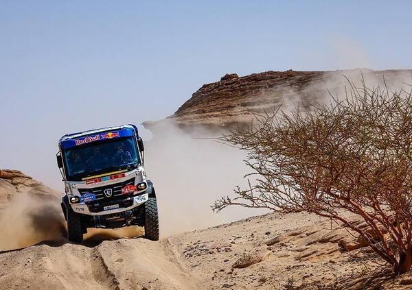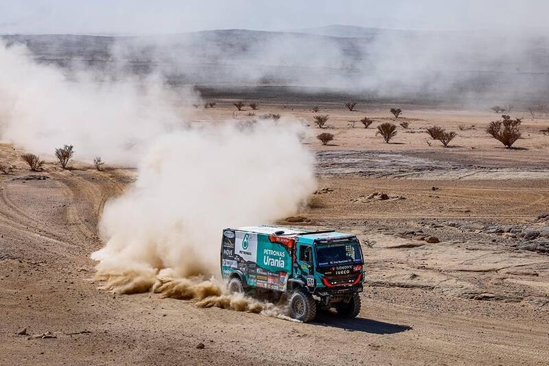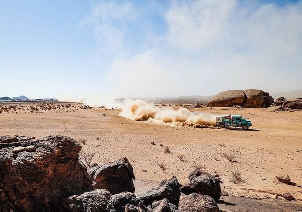 Non c’è storia, la gara è completamente appannaggio dei “mostri” russi, che piazzano il Master 43509 del campione in carica Dmitry Sotnikov davanti ai camion di Nokilaev, Shibalov e Karginov. Fnalmente, quarto, arriva l’Iveco De Rooy di Janus Van Kasteren. Quella degli Iveco è una bella storia futuribile. Sono ormai prototipi in grandi competere al massimo livello. 1100 cavalli, motori e meccaniche evolute, un certo confort e grandi maneggevolezza e prestazioni. Sono un pelo sotto ai mostri bianco-azzurro, e sono allestiti da piccoli atelier racing, come MM Racing della Repubblica Ceca. Uno di questi è l’Iveco quindicesimo assoluto di Claudio Bellina, Bruno Gotti e Giulio Minelli. Diversi gli obiettivi, non siamo ai livelli delle partecipazioni ufficiali per target e “responsabilità”, eppure anche con diverse, e più moderate ambizioni, il camion di ItalTrans e il suo Equipaggio hanno dimostrato che la competitività alla Dakar non dipende esclusivamente dalla velocità e dal rischio che si decide di correre, bensì e molto dal ritmo e dal margine di sicurezza che si pone come limite invalicabile per farsi una Dakar di grande appagamento e soddisfazione.