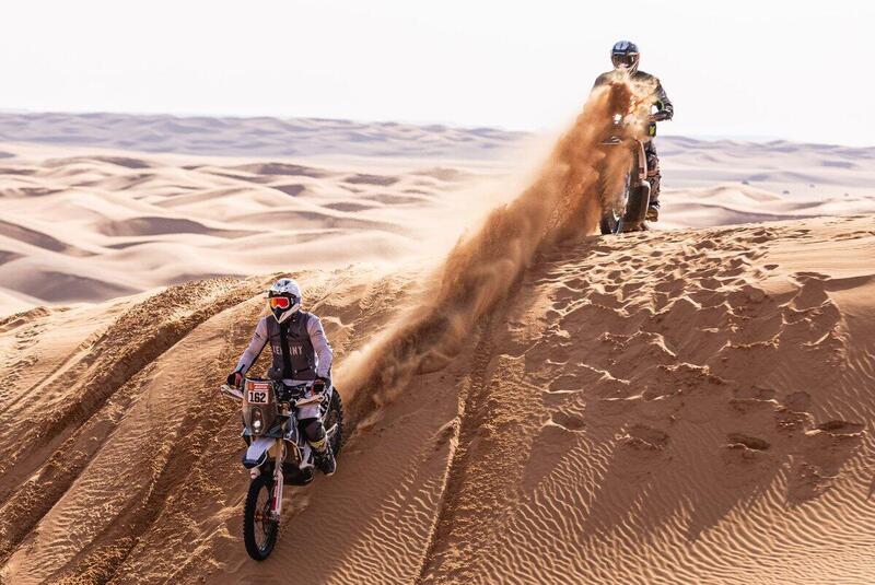 Apripista in seria difficoltà. Sanders, GasGas, esce di scena subito prima ancora di entrare nel vivo. L’australiano cade al mattino presto durante il trasferimento, è recuperato e portato in ospedale. Non azzardiamo, questa volta, forti contusioni di certo, poi si saprà meglio. Sunderland, GasGas, eredita l’”incarico” e si tuffa in un difficile rebus di navigazione. Morale, concluderà al 28° e vedrà svanire la sua leadership come la sabbia che, qui, torna coerentemente a scivolarti tra le dita. La tappa si conclude con un ritorno all’attività del Piloti Honda. Al traguardo di Al Dawaldimi vince “Nacho” Cornejo, cileno doc simpatico e scelta vincente del Team Monster Honda, ed è un bel ricordo saperlo di nuovo super competitivo. Secondo è il Campione in carica, Kevin Benavides, KTM, che competitivo lo è sempre. Terzo un altro miracolato, quel Joan Barreda che torna all’attracco dopo la lussazione della clavicola.
