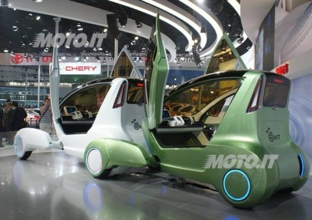 Denominato concept @Ant, questo esercizio stilistico proposto dalla Chery si propone di esplorare nuove frontiere della mobilità sostenibile grazie ad un veicolo in cui le due vetture che lo compongono possono , tramite sistemi telematici automatizzati, scindersi per procedere in totale autonomia l'uno dall'altro, oppure rimanere uniti collegando le ruote posteriori di una vettura con le ruote anteriori dell'altra.