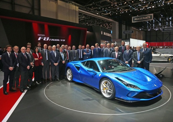 La Casa di Maranello intanto attira i flash dei fotografi con la nuova berlinetta F8 Tributo, un tributo per l'appunto al pluripremiato motore del Cavallino più potente di sempre, che nell'ultima evoluzione può vantare una potenza di ben 720 CV e una potenza specifica di ben 185 CV/litro.