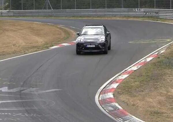 La Porsche, ha portato la Macan elettrica nel circuito tedesco per continuare le fasi di test su strada. Rispetto alla versione attuale, l’elettrica ha dei fari snelliti, una presa d’aria decisamente più piccola situata nella parte inferiore e una linea del tetto più bassa, che la rende più simile a quella di un coupé.
