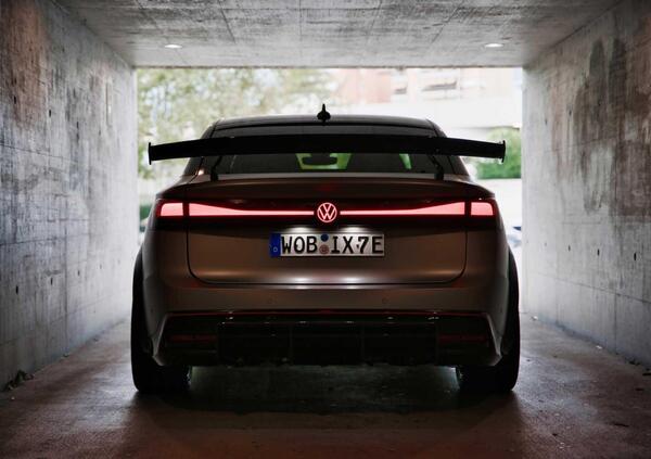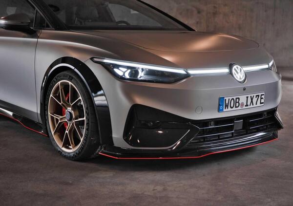 In futuro, la berlina elettrica ID.7 sarà offerta nella versione più sportiva GTX e, nonostante sia solo un prototipo, molti sono gli elementi che vedremo nel futuro modello finale. Infatti, la ID.X è stata equipaggiata con un body kit aerodinamico che rende la vettura più sportiva, la quale dispone di un nuovo paraurti con uno splitter in fibra di carbonio.
