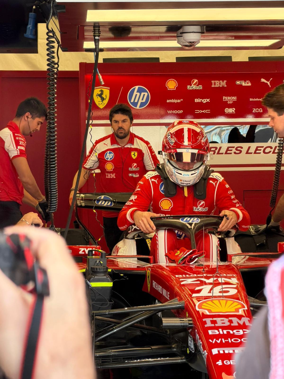 Grande lavoro in casa Ferrari con Charles Leclerc, sotto lo sguardo attento