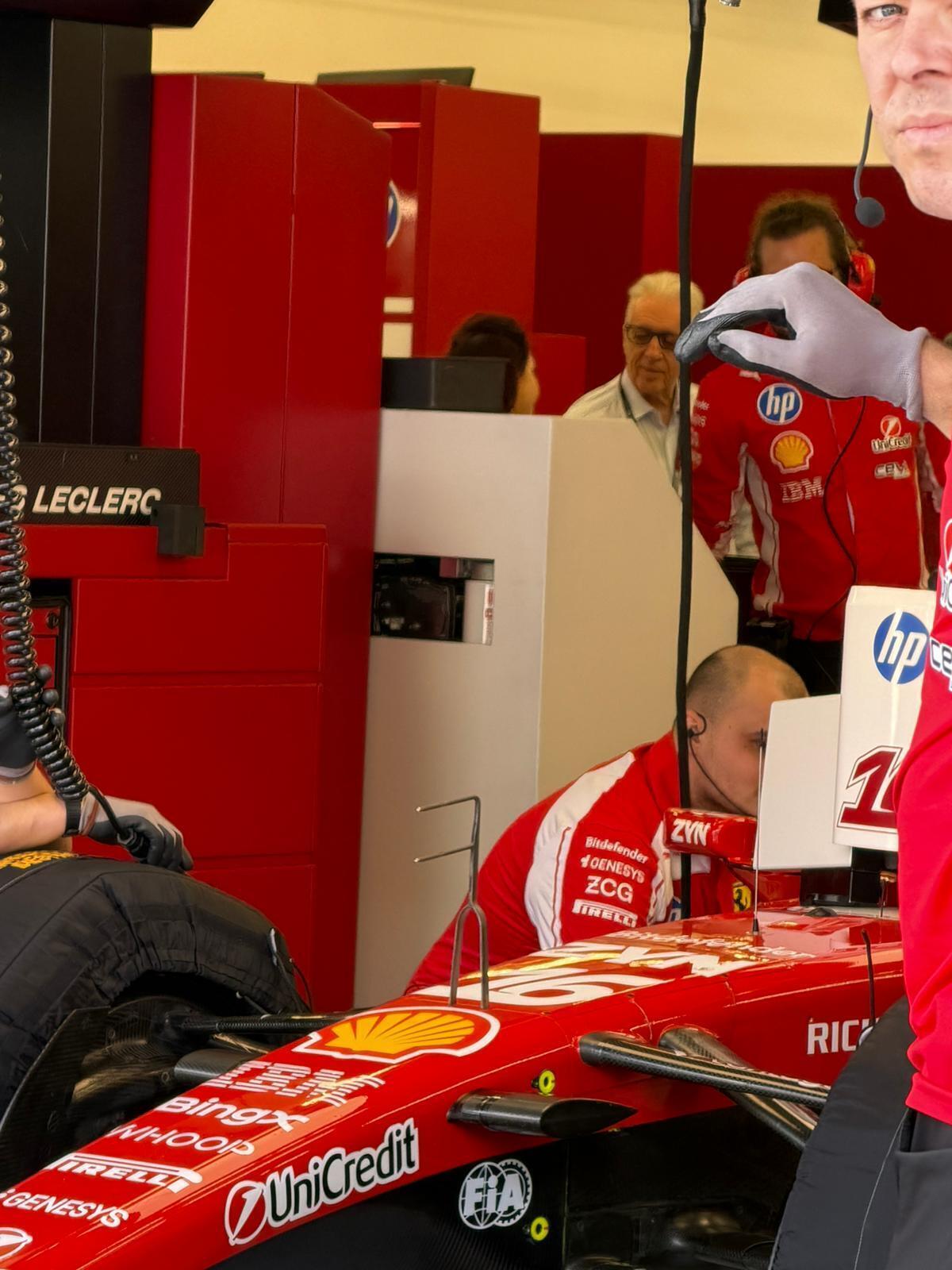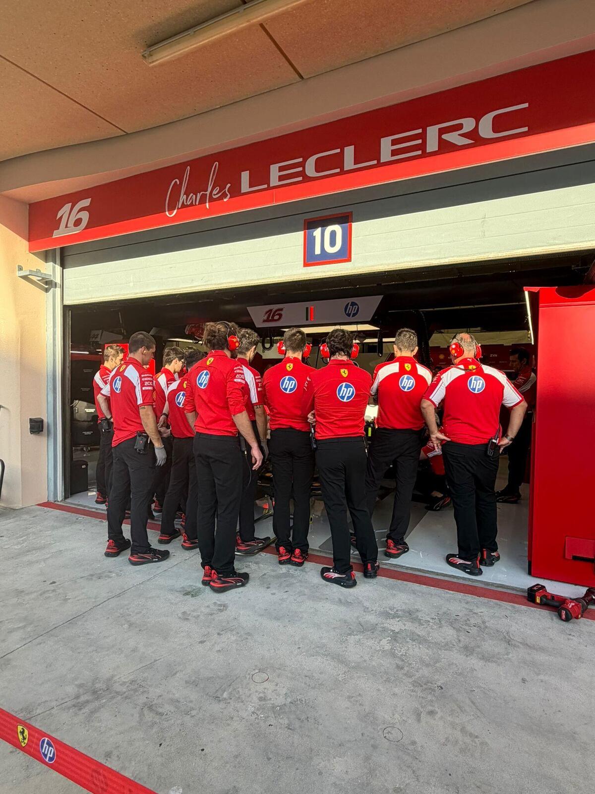 Si lavora nel box Ferrari sulla SF-26 di Charles Leclerc con i meccanici a