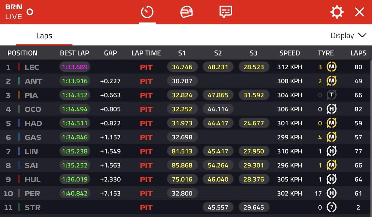significativi, ad esempio, i 25 giri di Bortoleto su C2 e i 24 di Esteban