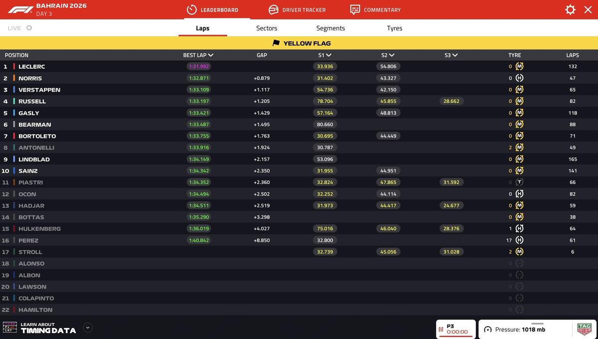 Alle sue spalle la Red Bull di Hadjar a +1.174 e l'Haas di Esteban Ocon