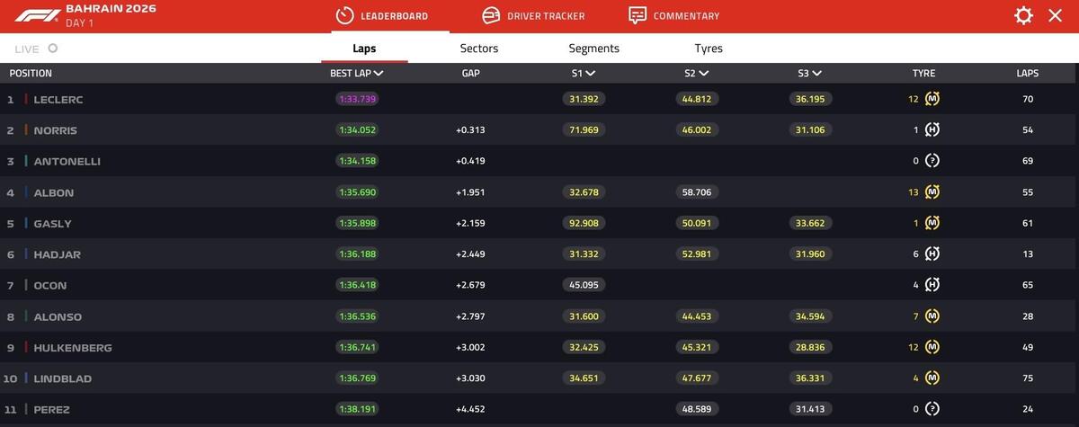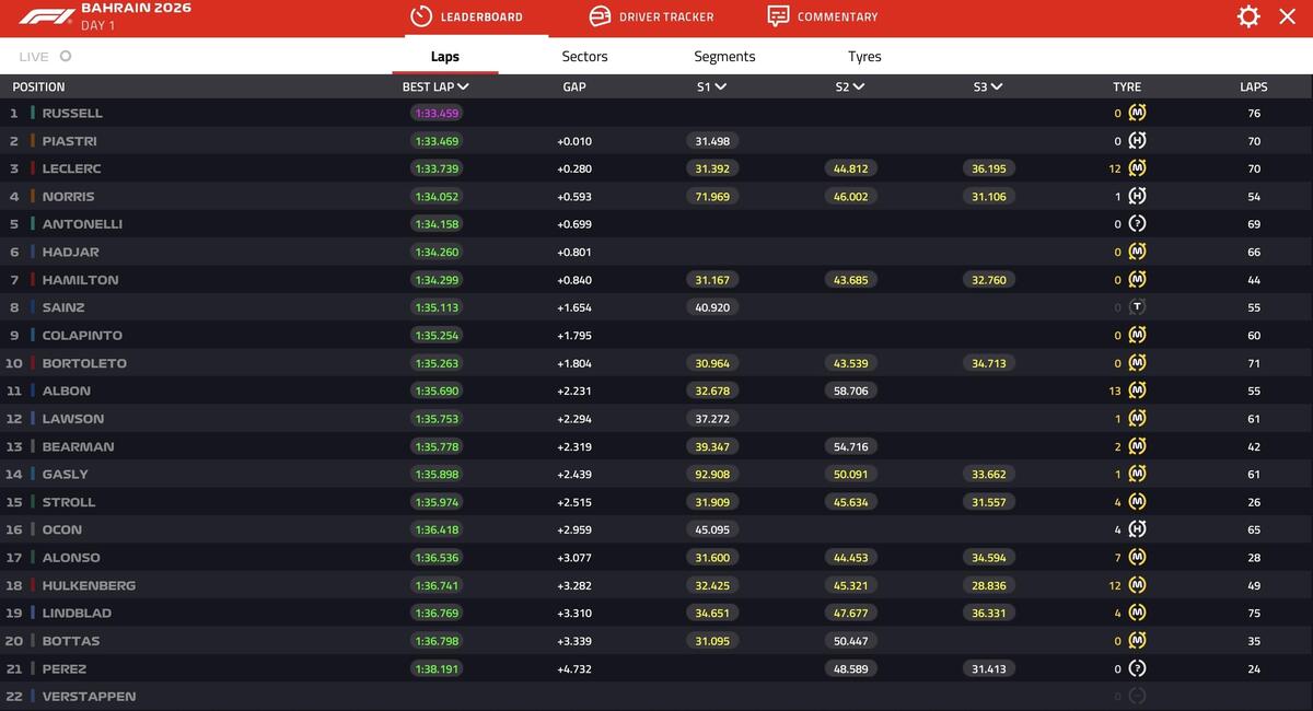 Lo stakanovista della mattinata è stato il rookie Lindblad, con 75 tornate