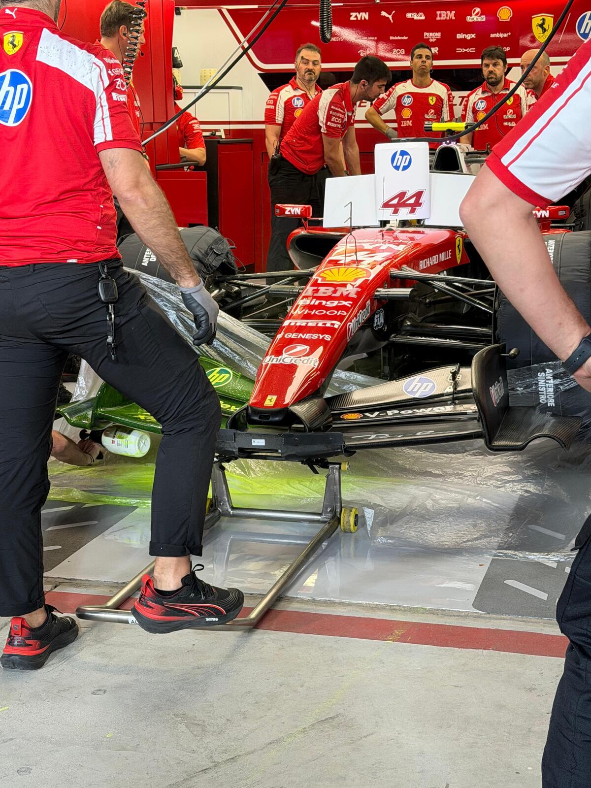in pit lane, salvo poi tornare in pista per effettuare prove di partenza,