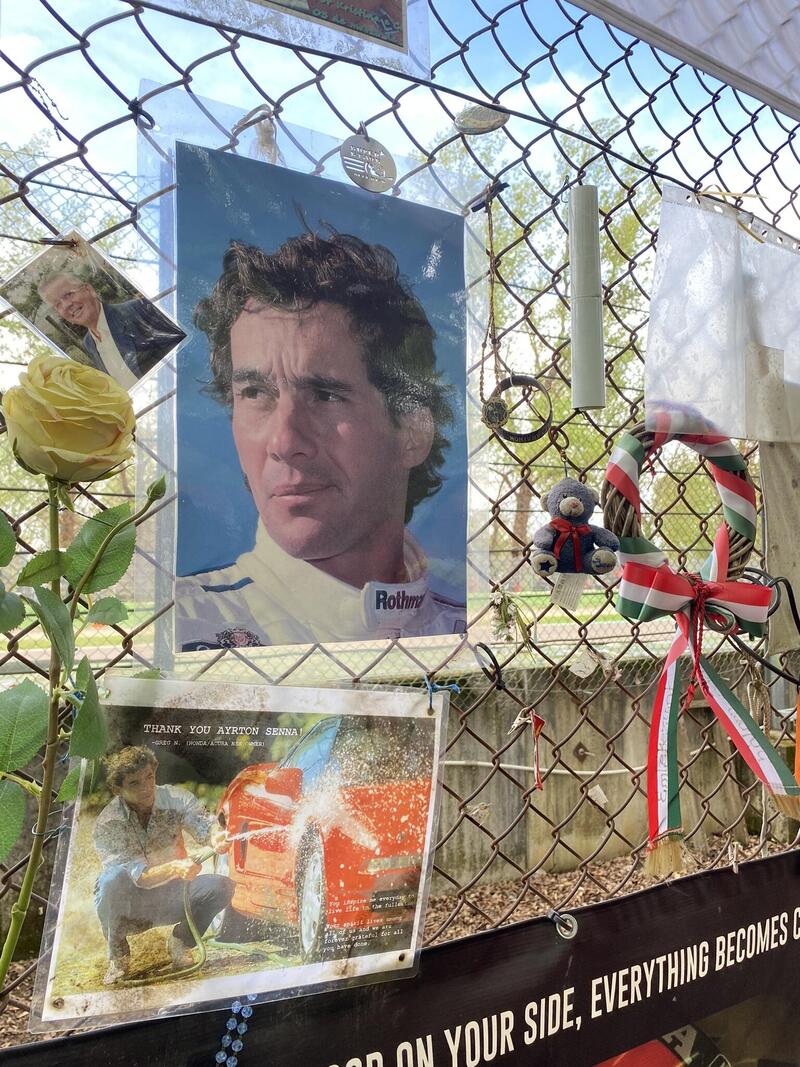 È una presenza gentile, come la brezza che sollevano le vetture che corrono in pista a pochi metri dal Memorial di Senna e che dà movimento alle bandiere, ai messaggi di cordoglio e alle foto che ricordano momenti di vita, passioni mai sopite nel tempo. Il luogo in cui a Imola è custodito il ricordo di Senna è una capsula ben conservata di un’epoca ormai lontana, ma non per questo meno vivida nella sua rappresentazione concreta, immersa nel verde. Ma Senna è anche materia dei sogni di chi non l’ha potuto conoscere, tessuto dei rimpianti di chi lo ha vissuto.