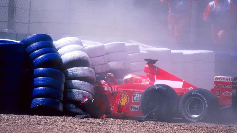 Andiamo avanti di 364 giorni. L’11 luglio 1999 va in scena il Gran Premio di Gran Bretagna con quasi lo stesso copione del 1998. L’ultimo campionato del millennio vede ancora il dualismo Hakkinen-Schumacher a farla da padrone, ma stavolta le chance per la Ferrari sono decisamente più concrete. La F399 si è avvicinata notevolmente alle prestazioni della MP4/14 e per Schumacher sembra essere finalmente l’anno buono per l’agognato titolo. A Silverstone però accade l’irreparabile. Dopo una seconda partenza, il tedesco scatta male e nel tentativo di recuperare va inspiegabilmente dritto alla curva Stowe, finendo violentemente contro le barriere. Sulla Ferrari #3 si è rotto un dado dello spurgo dei freni posteriore, un guasto quasi banale che basta però a procurare al tedesco la frattura di tibia e perone della gamba destra. Poteva andare peggio, ma il Kaiser deve abbandonare anzitempo i suoi sogni di gloria e saltare le successive 6 gare. Sembra che Hakkinen possa avere la strada spianata ad un titolo facile, ma l’incidente di Schumacher apre scenari inaspettati per Irvine e Frentzen che accarezzeranno l’idea di conquistare un clamoroso titolo mondiale, prima di arrendersi definitivamente al finlandese tra errori ed episodi sfortunati.