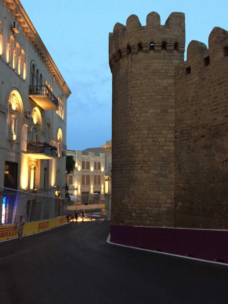 E poi la città vecchia, dichiarata patrimonio dell’Unesco, attorno alla quale gira la pista in un girotondo dove il saliscendi è comprensibile solo passeggiando, perché le riprese TV non danno l’idea del dislivello. Baku è una città gradevole, coi ritmi lenti, ma con tanti soldi. L’esportazione di gas e petrolio sono alla base della ricchezza del paese per i ceti medio superiori, le supercar si sprecano e la voglia di divertimento è altissima, siamo in un mix fra i russi straricchi e la discrezione araba della non opulenza visibile. Per cui era facile finire in un ristorante che all’esterno era senza pretese, e poi vedere all’interno ragazze stupende, macchine sportive ultimo modello e ricchissimi giovanotti con orologi da migliaia di euro al polso e poi mangiare pollo, patate (piatto tipico alla russa) e bere spendendo al massimo 10 euro. Un contrasto forte che nella città vecchia, raggiungibile a piedi durante il week end di gara perché le strade sono tutte chiuse, e mangiare in un ristorante tipico a meno di 5 euro. Questo agli inizi, poi il turismo ha cominciato a inserire Baku come nuova meta e qui le cose sono cambiate un po’ come sempre accade con la F.1. Gli hotel che costavano pochissimo, adesso viaggiano a prezzi europei nel week end di gara. Una caratteristica del tracciato è che sorge in mezzo a enormi palazzi, con facciate tipicamente di regime. Poi, una volta che provi a entrare, vedi che gli interni sono disabitati, che il retro è fatiscente così come le strutture interne.