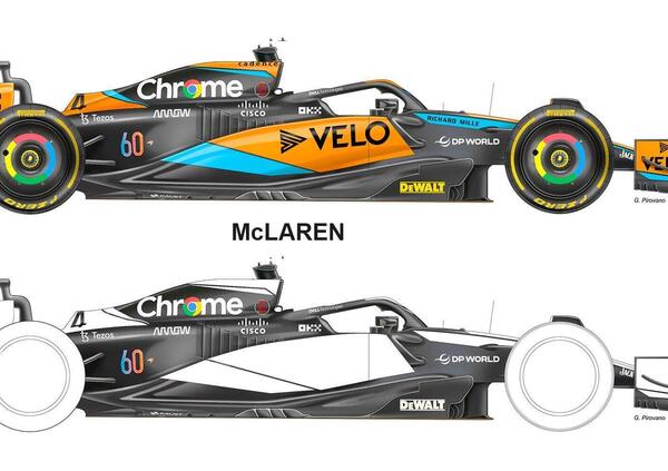 C'è del nero carbonio anche sulla McLaren MCL60, nella zona attorno e ai lati del motore e sull'ala posteriore ad accompagnare l'azzurro e il classico arancio papaya. Sulla Alpine A523 - che sarà blu e rosa, fatte salve le prime tre gare stagionali, in cui sarà in total pink per lo sponsor BWT - troviamo il nero ai lati del cofano motore e sulle ali. Anche l'Alpha Tauri AT04, che da lontano pare bianca e blu, presenta più nero ai lati del telaio e sulle paratie dell'ala anteriore e di quella posteriore.