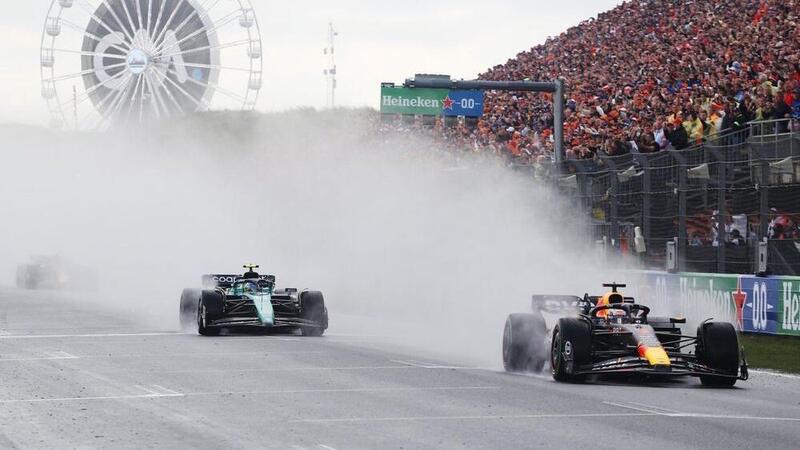 Appena due anni dopo, Verstappen si ripresenta in Olanda da assoluto favorito e con due titoli e mezzo già sulle spalle, in quanto quello del 2023 assiste ad un dominio letteralmente senza precedenti e a Zandvoort Max è reduce da 8 vittorie consecutive con l’occasione di eguagliare il record di Vettel del 2013. L’unica variabile in grado di mettergli forse i bastoni tra le ruote è la pioggia, che la domenica condiziona pesantemente i 72 giri previsti. Subito dopo la partenza infatti un acquazzone getta nel caos la griglia costringendo una frenetica corsa ai box. Dal gruppo emergono Alonso e Gasly, mentre le Ferrari si trovano costrette a navigare nelle retrovie. Un secondo scroscio rimescola poi nuovamente le carte nelle ultime tornate costringendo anche un’interruzione di quasi un’ora. Dopo la ripartenza Perez sull’altra Red Bull riceve una penalità e scivola fuori dal podio mentre dietro si vedono ancora molti sorpassi. L’unica cosa che davvero non cambia è la prima posizione di Verstappen, che implacabile si porta a casa la nona vittoria consecutiva nonostante la gara conti alla fine più di 180 sorpassi e più di 80 pitstop complessivi.