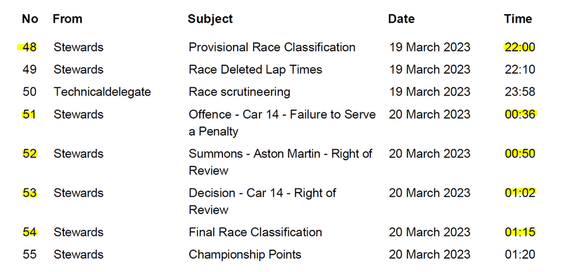 Ci sono dei misteri attorno al GP di Jeddah e riguardano le penalità inflitte a Fernando Alonso ed Aston Martin. Qualcosa non torna e lo dimostriamo con due documenti ufficiali. La prima è la fotografia dello schieramento di partenza in cui Alonso è stato penalizzato di 5 secondi per non aver rispettato la posizione in griglia, ma dall’immagine si vede chiaramente come fossero ben 5 piloti fuori dalla griglia e solo uno è stato penalizzato: perché? Si vede bene che una è la Mercedes di Russell, poi c’è Gasly con l’Alpine, Bottas con l’Alfa Romeo e De Vries con l’Alpha Tauri, ma la penalizzazione è scattata solo per il pilota Aston Martin: il dubbio che qualcuno abbia preso di mira il team di Stroll perché dà fastidio è molto forte e questo dubbio diventa una certezza quando sul finire di gara via radio la Mercedes ha comunicato a Russell che Alonso avrebbe preso altri 5 secondi di penalizzazione per non aver svolto al meglio il pit stop con la penalità. Bene, se guardate il cronologico della FIA in merito alle sanzioni, come faceva la Mercedes a sapere della penalità ad Alonso se questa è stata comunicata dopo la fine della gara?
