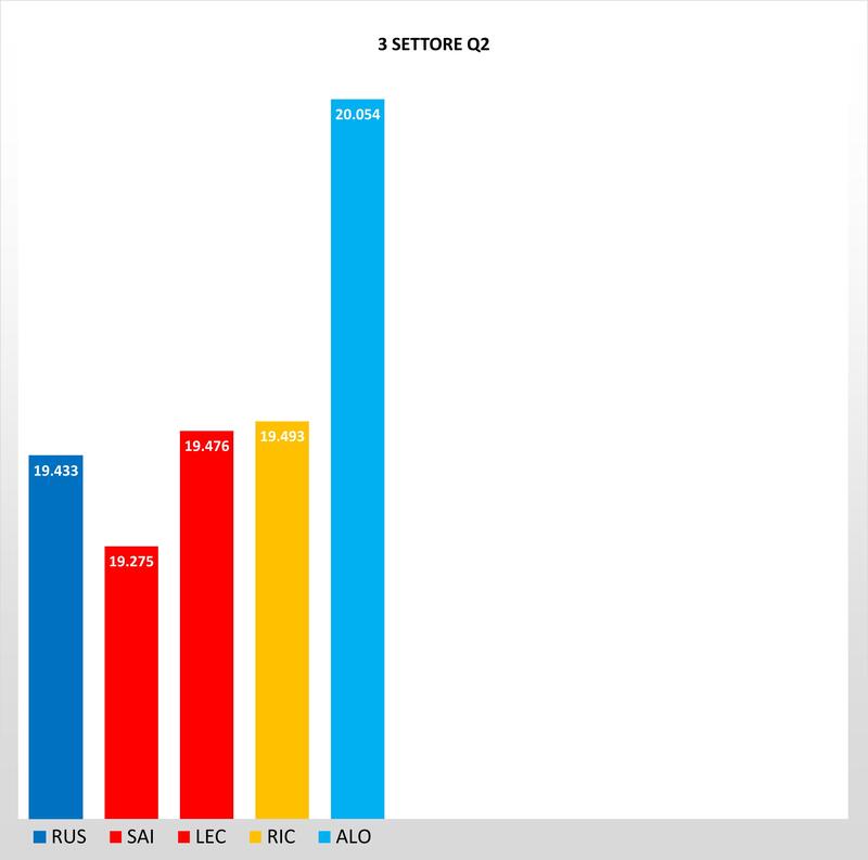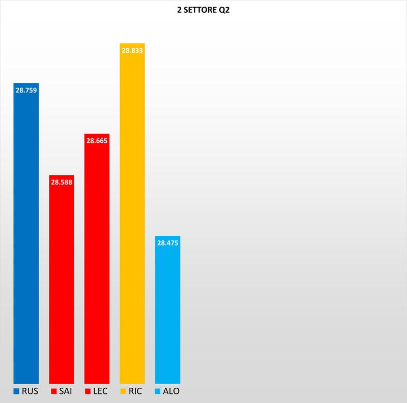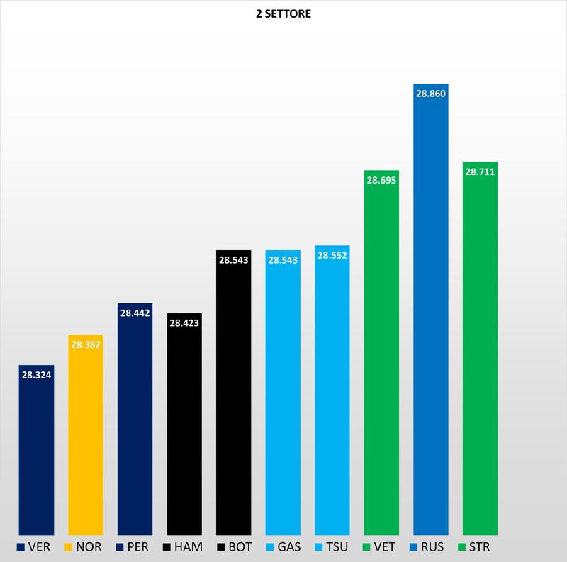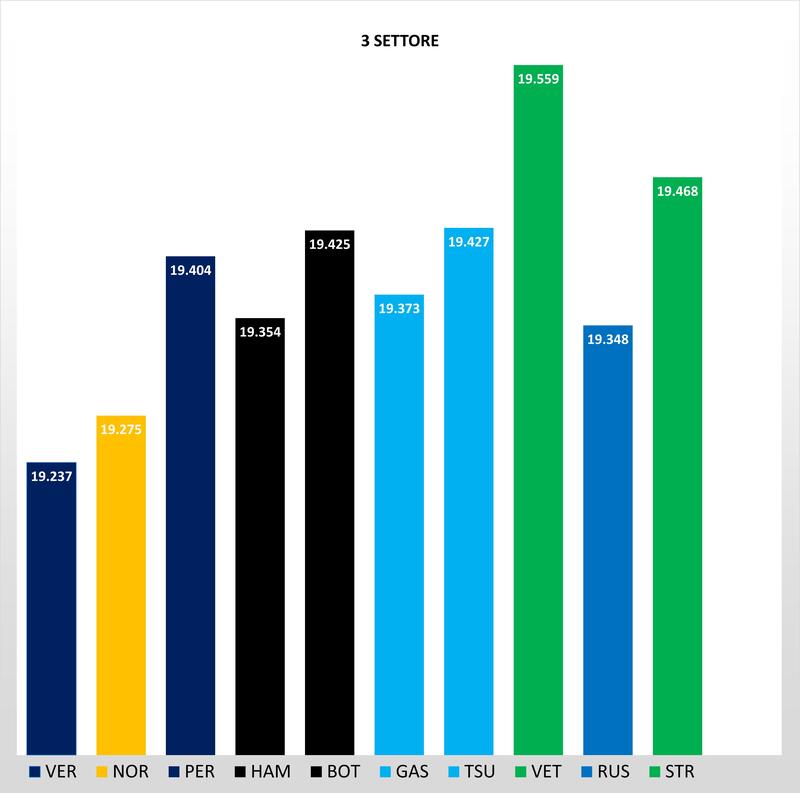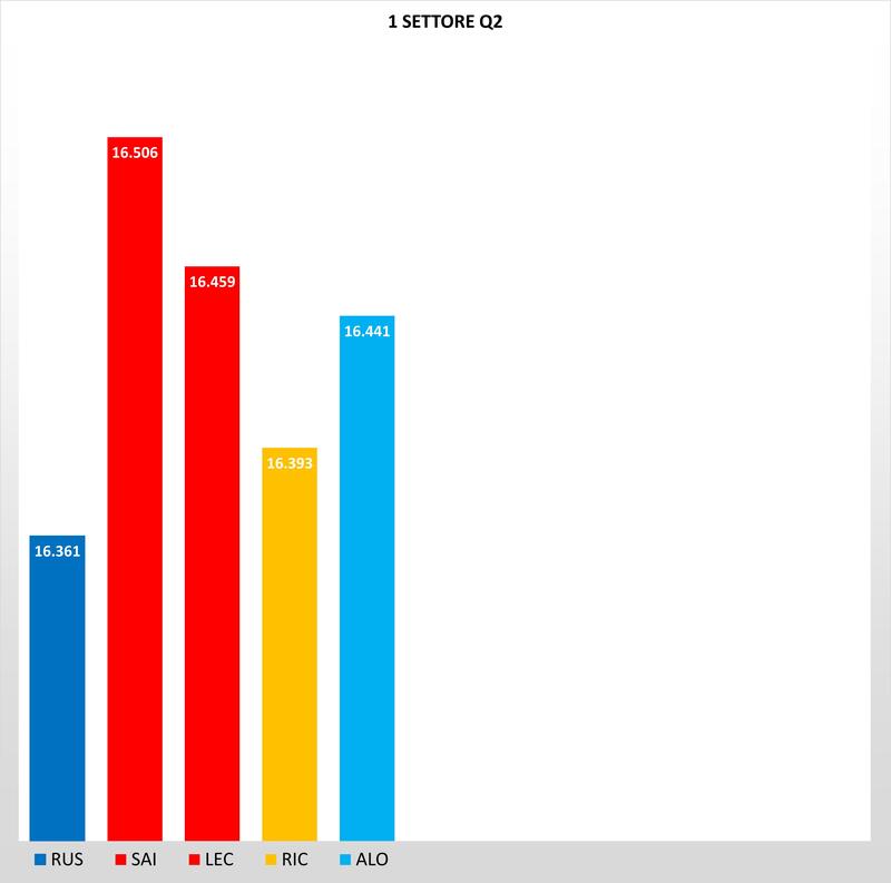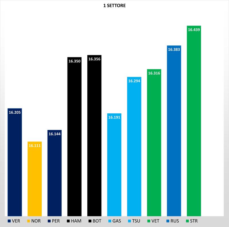 Partiamo con l'analisi delle qualifiche dal primo settore, dove Norris sfruttando le qualità della MCL35 M nei rettilinei fa il record ,ed è davanti a Verstappen di 96 millesimi. Parte forte anche Perez più veloce dell'olandese, mentre la Mercedes a differenza del suo cliente McLaren, soffre nel primo settore con Hamilton e Bottas che accusano due decimi da Norris.