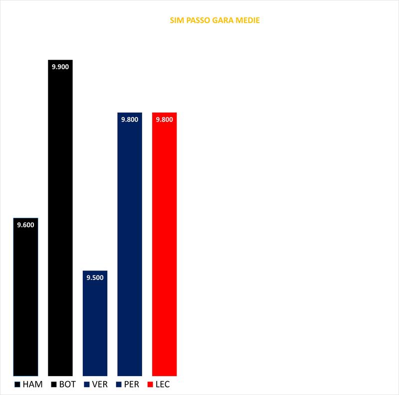 Hamilton facendo la differenza nel T3, ed infliggendo un decimo a Bottas e Verstappen, conquista la miglior prestazione. Gli unici buoni segnali della simulazione qualifica della Ferrari arrivano nel T3 con Sainz vicinissimo a Bottas e Leclerc che fa lo stesso intermedio di Vettel, Alonso, Norris e Perez.