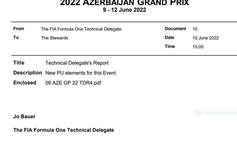 La Fia nel corso della prima sessione di prove libere come di consueto, ha svelato chi cambierà la power unit o alcuni elementi. La Red Bull sia a Max Verstappen che a Sergio Perez ha montato un secondo motore, che non ha aggiornamenti rispetto a quello utilizzato fino a Monaco.