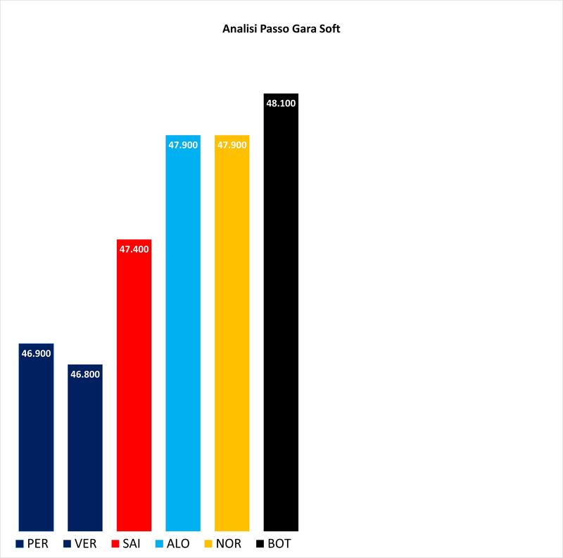 Anche nella simulazione gara la Red Bull conferma di essere la macchina da battere a Baku, con Verstappen e Perez che volano con le soft, mentre Sainz non riesce a tenere il loro ritmo. Ottimo long run di Alonso con lo stesso passo di Norris, e più veloce di Bottas.
