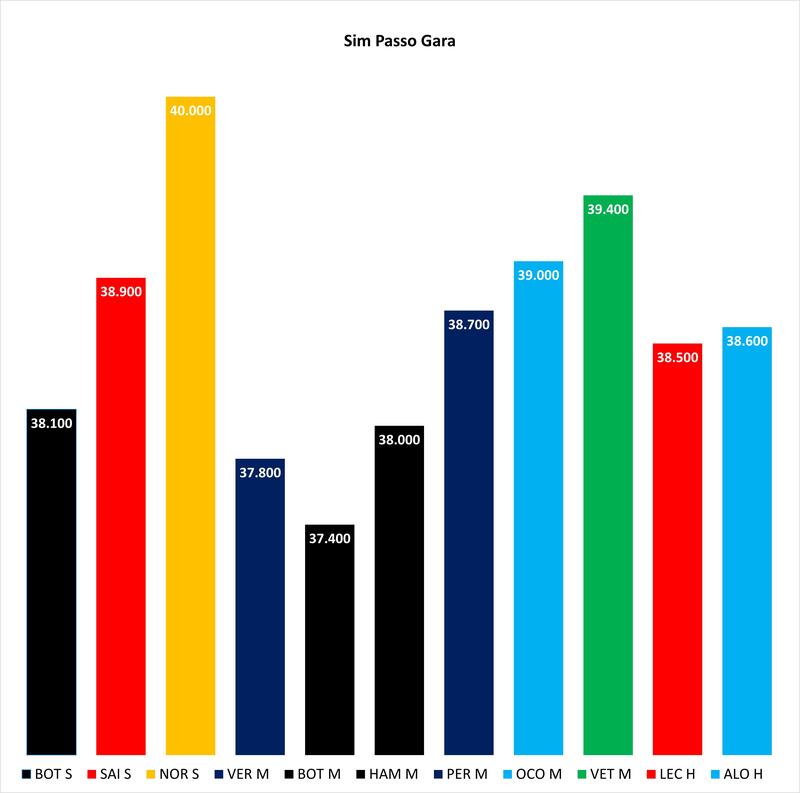 Anche nella simulazione gara Bottas conferma che con il telaio usato da Hamilton fino a Baku, ha trovato il feeling con la W12, Sainz come tante volte quest'anno nei long run è più competitivo che nel giro secco, ritmo molto lontano da quello del finlandese e dello spagnolo da parte di Norris.