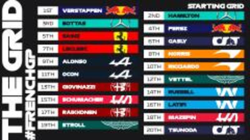 Sarà Max Verstappen a partire dalla pole nel Gran Premio di Francia, settima prova del mondiale 2021. Accanto all’olandese scatterà Lewis Hamilton della Mercedes. Valtteri Bottas occuperà la seconda fila con il vincitore di Baku Sergio Perez.