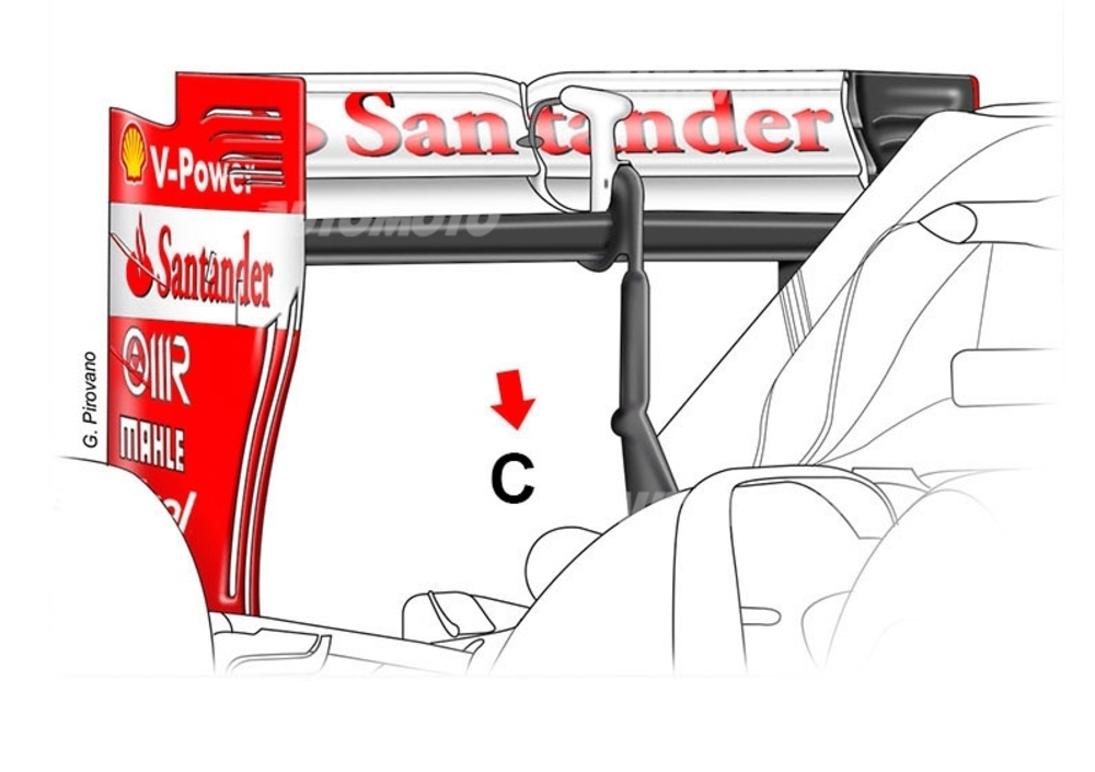 Ferrari (C) ha scelto di eliminare questo elemento usato invece a Singapore per poter avere più velocità di punta e meno carico aerodinamico. Anche la Williams ha usato il monkey seat al posteriore, segno che questa scelta si è rivelata più efficace. Domani in gara la Ferrari punterà a sorpassare sul dritto avendo meno resistenza aerodinamica.