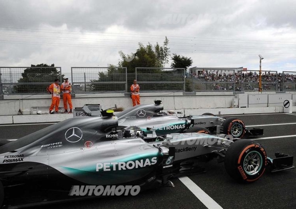 Accanto a Rosberg scatterà il suo compagno di squadra, Lewis Hamilton, staccato di soli 79 millesimi dal rivale per il titolo. L'incidente di Kvyat ha impedito ad Hamilton di cercare di battere il crono di Rosberg, colto in precedenza nella sessione. Completa la top three il pilota della Williams, Valtteri Bottas, terzo - e a soli 4 decimi dal poleman Rosberg - al volante di una FW37 competitiva sui curvoni veloci della pista di Suzuka.