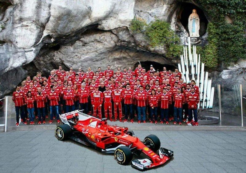 Visti i guai a ripetizione di Singapore, le rotture di Sepang e i dubbi di Suzuka, un gruppo di tifosi ha riunito in una fake news tutta la squadra corse facendo un fotomontaggio in cui si vede il team in un noto santuario in cui, si vede, la rossa ha bisogno di bagnarsi per ritrovare la condizione di forma...