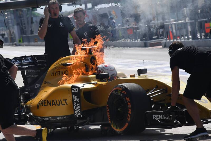 Diciannovesimo è il pilota della Renault, Kevin Magnussen, protagonista di una disavventura - per fortuna senza conseguenze - nel corso delle FP1. La RS16 del danese è andata in fiamme nei box dopo pochi minuti dall'inizio della sessione. Magnussen è stato lesto nel balzare fuori dalla monoposto, e l'incendio - probabilmente causato da una perdita di benzina - è stato domato dopo quindici minuti. Chiudono la classifica Romain Grosjean, in forza alla Haas Racing, e i due alfieri della Manor, Pascal Wehrlein ed Esteban Ocon.