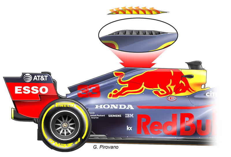 La Red Bull RB15, invece, all'Hungaroring potrebbe sfruttare un cofano motore a "ciminiera". Questa soluzione era stata già portata in Germania, ma non era stata usata in gara. Il motivo del suo mancato utilizzo è semplice: serve a smaltire più agevolmente il calore dagli organi della power unit, e questa funzione non si è resa necessaria durante la corsa, disputata in condizioni climatiche piuttosto fredde. Se le temperature in Ungheria dovessero rivelarsi elevate, la Red Bull potrebbe impiegare questa variante.