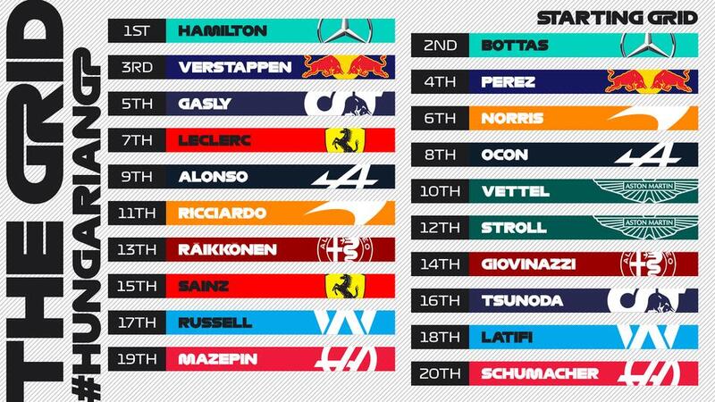 Sarà Lewis Hamilton a partire dalla pole nel Gran Premio di Ungheria 2021 di Formula 1. Accanto a lui in una prima fila monopolizzata dalla Mercedes partirà Valtteri Bottas. Max Verstappen della Red Bull occuperà la seconda fila con il compagno di squadra Sergio Perez.