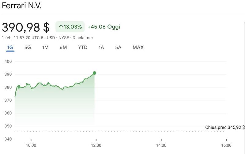 Ferrari e Mercedes devono ancora fiatare sul possibile passaggio, ma il mondo ha già reagito chiaramente alla notizia. Nessuna smentita, nessuna conferma, eppure la semplice indiscrezione ha fatto schizzare alle stelle il valore dell’azienda Ferrari con l’apertura della Borsa di New York. La giornata di ieri, mercoledì, era stata chiusa con un prezzo delle azioni a 346,78 dollari, oggi il massimo è di 390,70 $. Il numero, tuttavia, è destinato ad aumentare col passare delle ore. La capitalizzazione di mercato stimata del Cavallino Rampante è ora di 69,12 miliardi di dollari. Parliamo di un aumento di quasi 7 miliardi di dollari del valore dell’azione, ovvero il 12,95% in più. Ovviamente tutto sarà ancora da vedere perché l’arrivo del Sr non è stato ancora ufficializzato dalle parti prese in causa. La scorsa estate Hamilton aveva infatti esteso il suo contratto con Mercedes per le stagioni 2024 e 2025. Tuttavia, il divorzio potrebbe essere anticipato al termine di quest’anno mediante una clausola d’uscita che gli permetterà di vestire di rosso già nel 2025, lasciando il futuro di Carlos Sainz in balia delle onde. Il contratto dello spagnolo, infatti, scadrà il 31/12/2024 e i rumors di un matrimonio combinato dal padre, Carlos Sainz Sr, con Audi circolano già da tempo. Da considerare anche se Toto Wolff sia disposto a vivere da separati in casa con Hamilton per tutto il 2024, o dirgli addio ancor prima della presentazione della nuova W15. L’unica certezza è che mentre noi attendiamo ufficialità dai team (probabilmente alle 20:00) le quote in Borsa della Scuderia continuano a salire.