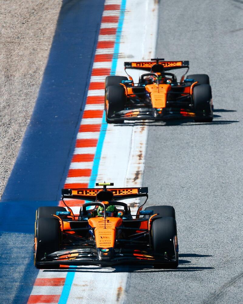 L’effetto DRS in Austria è così potente da far sì che due auto dal passo simile possano restare incollate l’una all’altra. Ma a far rimanere così vicini Norris e Piastri per una lunga fase della corsa è stata anche la capacità della MCL39 di gestire le gomme alla perfezione. L’effetto macroscopico dell’aria sporca in cui si viaggia restando a una distanza ravvicinata di chi è davanti è cosa nota. Ma la MCL39 non sembra soffrirne più di tanto, anche su un circuito rovente, per giunta con un asfalto abrasivo. Piastri si è dovuto preoccupare degli pneumatici solo nel momento del bloccaggio in curva 4, che ha spaventato un muretto pronto a lasciar correre i suoi piloti perché errore dalle conseguenze imprevedibili.