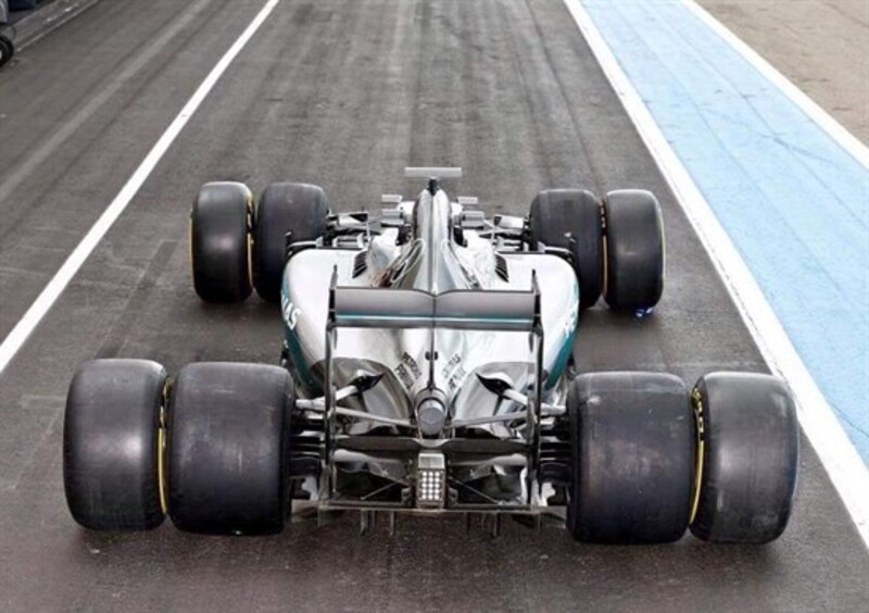 Diverse le novità: la larghezza degli pneumatici anteriori aumenta di 60 mm, da 245 a 305 mm; quella delle gomme posteriori è salita di 80 mm, passando da 325 a 405 mm. Si tratta di un incremento del 25% rispetto alle dimensioni attuali, sia per quanto concerne le slick che per le Cinturato intermedie e full wet. Il calettamento, vale a dire il diametro del cerchio, rimane invece invariato: 13 pollici.