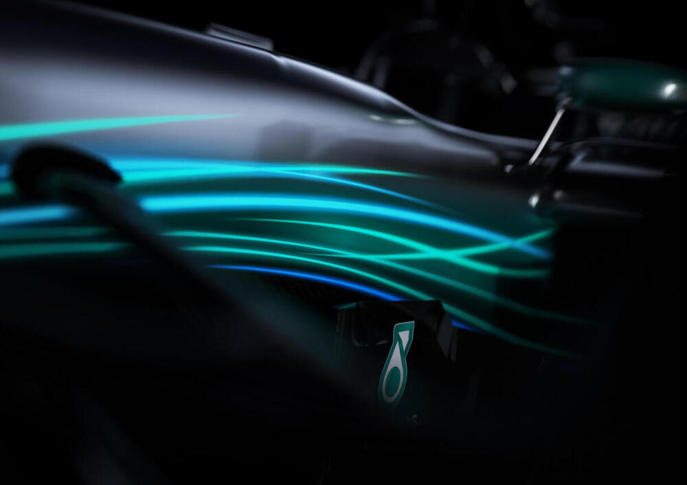 In attesa del lancio ufficiale, Mercedes ha diffuso alcuni teaser della monoposto, da cui possiamo intuire dei particolari interessanti. Il primo raffigura la parte finale del muso della W08 Hybrid, che, a differenza di quelli delle vetture presentate sinora, non vanta una piccola protuberanza sulla punta e appare inoltre più affusolato.